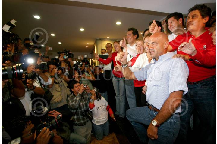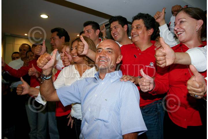 PUEBLA, PUEBLA, 05JULIO2009.- José Luis Sánchez Solá “El Chelis”, festejo con los candidatos priistas poblanos esta noche, luego la información difundida por varias encuestadoras el tricolor aventaja en las preferencia electorales a nivel nacional. FOTO: FRANCO/CUARTOSCURO.COM