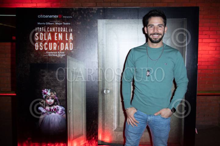 Rui Senderos a su paso por la alfombra roja por las primeras 100 representaciones de la puesta en escena "Sola en la oscuridad", que se presenta en el Teatro México del Centro Teatral Manolo Fábregas.
