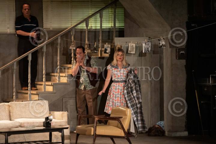Lenny Zundel, Itatí Cantoral y Marcial Casale durante la obra "Sola en la oscuridad" que se presenta en el Teatro México, del Centro Cultural Manolo Fábregas.