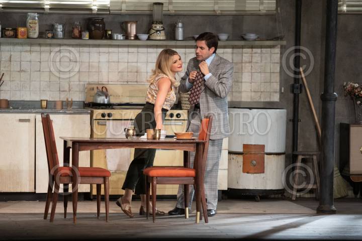 Itatí Cantoral y Sergio Bonolla durante la obra "Sola en la oscuridad" que se presenta en el Teatro México, del Centro Cultural Manolo Fábregas.