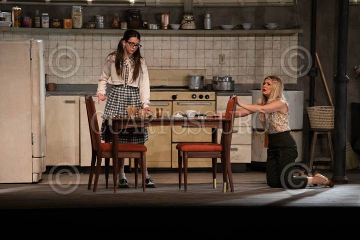 Majo Edgar e Itatí Cantoral durante la obra "Sola en la oscuridad" que se presenta en el Teatro México, del Centro Cultural Manolo Fábregas.