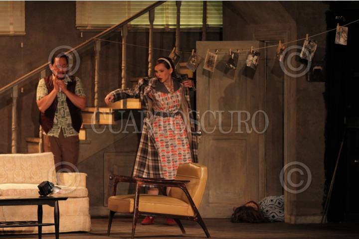 Los actores Marcial Casale y Lenny Zundel durante la obra "Sola en la oscuridad" que se presenta en el Teatro México, del Centro Cultural Manolo Fábregas.