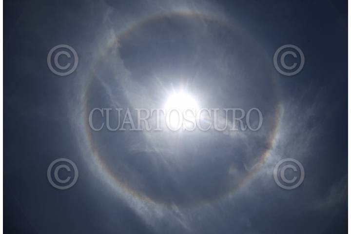 CIUDAD DE MÉXICO, 24MAYO2025.- Un halo solar (fenómeno causado por partículas de hielo en suspensión en la troposfera que refractan la luz generando un espectro de colores alrededor del Sol) fue apreciado desde diversos puntos de la capital del país. FOTO: GALO CAÑAS/CUARTOSCURO.COM