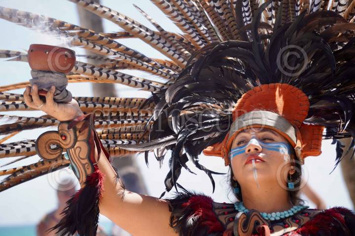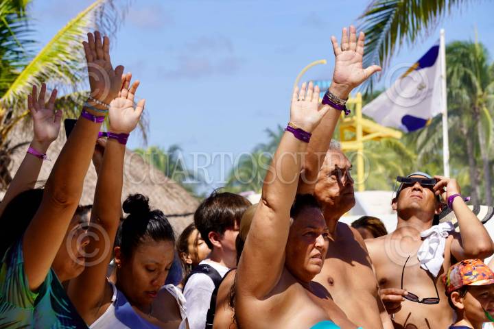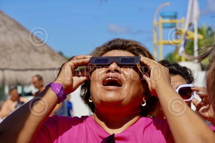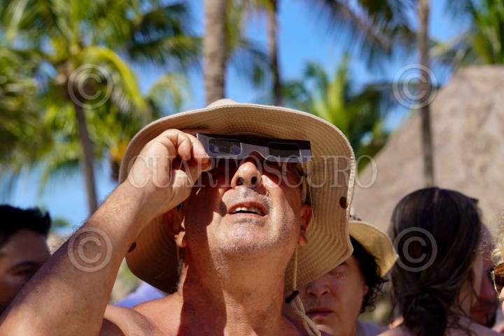 PLAYA DEL CARMEN, QUINTANA ROO, 14OCTUBRE2023.- Turistas disfrutan del eclipse en medio de una ceremonia maya en este destino turístico FOTO: ELIZABETH RUIZ/CUARTOSCURO.COM