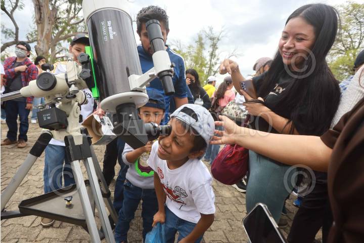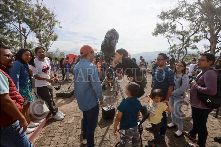 OAXACA, OAXACA, 14OCTUBRE2023.- Cientos de personas disfrutaron del eclipse solar en el Observatorio Astronómico Municipal “Canuto Muñoz Mares” de la capital de Oaxaca. En el lugar se dispusieron de al menos 10 telescopios y lentes para observación segura del fenómeno que en la ciudad alcanzó un 70?cobertura. A pesar de la nubosidad que se presentó en la ciudad, el evento astronómico pudo ser apreciado en su totalidad. FOTO: CAROLINA JIMÉNEZ/CUARTOSCURO.COM