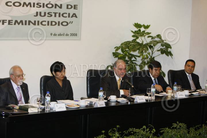 MÉXICO D.F. 09ABRIL2008.-El senador Alejandro González Alcocer, presidente de la Comisión de Justicia, presidió reunión en la que se trató el tema "El Feminicidio en México", en la gráfica lo acompañan de izquierda a derecha: Dr. Raúl Carranca y Rivas, Mtra. Verónica Martínez Solares, Dr. Moisés Moreno Hernández y el senador Ulises Ramírez. FOTO: IGNACIO GÓNZALEZ /CUARTOSCURO.COM