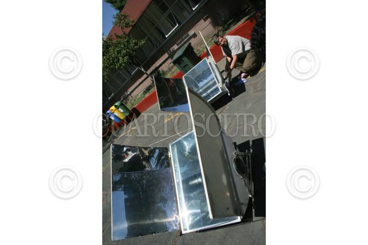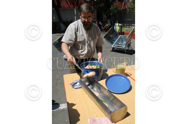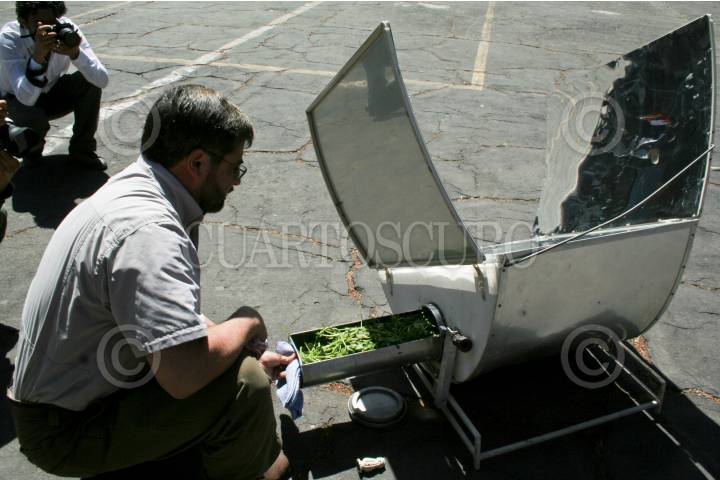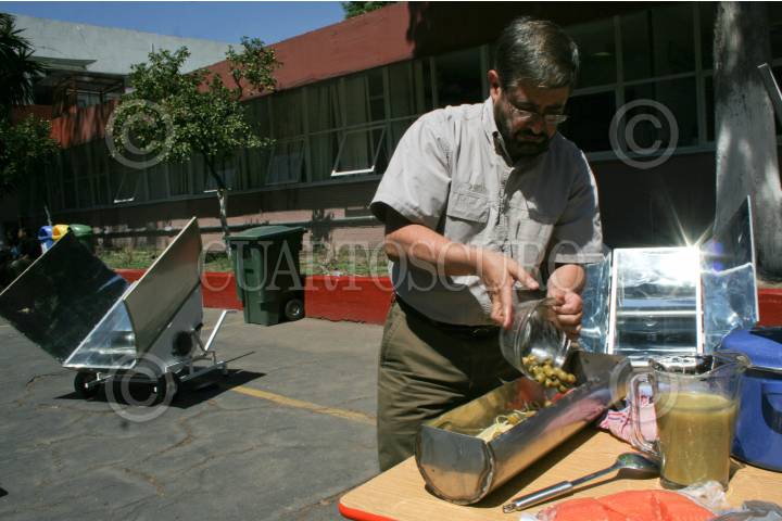MÉXICO, D.F., 26FEBRERO2009.- El Profesor, Eduardo Rincón Mejía de la Universidad Autónoma de la Ciudad de México preparó tres platillos de comida en estufas solares con el fin de mostrar los nuevos proyectos de energía solar dentro del programa de universidades. FOTO: ENRIQUE ORDÓÑEZ/CUARTOSCURO.COM