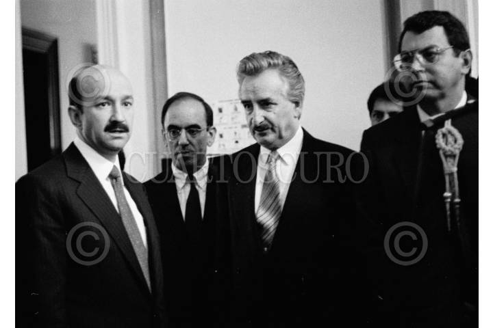 MÉXICO, D.F., 05JUNIO2015.- El senador Manuel Camacho Solís, murió esta madrugada se sabe que padecía de cáncer cerebral desde hacía un año, el político nació en la ciudad de México el 30 de marzo de 1946, de formación priista fue egresado de la Facultad de Economía de la UNAM. Camacho Solís fue elegido por el presidente Carlos Salinas de Gortari como comisionado para la paz durante el levantamiento armado del EZLN en el año de 1994, Regente de la Ciudad y candidato a la presidencia por el Partido del Centro Democrático. El Presidente de México, Carlos Salinas de Gortari, José Cordoba Montoya, Fernando Gutiérrez Barrios y Manuel Camacho Solís durante la presentación del libro de estudios sobre la Constitución de 1917, el 04 de febrero de 1992. FOTO: ARCHIVO/ VICTOR MENDIOLA /CUARTOSCURO.COM