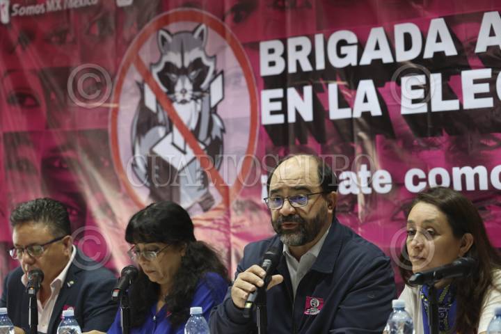 CIUDAD DE MÉXICO, 26MAYO2025.- Amado Avendaño Villafuerte, Mariana Vega, Emilio Álvarez Icaza Longoria, y Mariana González Torres,, que forma parte de la organización Somos México presentaron la Brigada Antimapaches en la Elección Judicial, en la que realizaron un llamado a la ciudadanía para sumarse y participar como observadores en jornada electoral del próximo domingo y evitar cualquier irregularidad, esto a pesar de que no están de acuerdo con el proceso, al señalarlo que solo busca debilitar al Poder Judicial. El encuentro con medios se llevo a cabo en un hotel de Reforma, en donde también rechazaron cualquier entendimiento con la CNTE, ya que por la mañana la Presidenta de México, que ahora los maestros se están sumando a boicotear la elección, cosa que más tarde los profesores desmintieron. FOTO: MOISÉS PABLO/CUARTOSCURO.COM