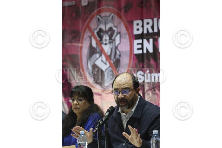 CIUDAD DE MÉXICO, 26MAYO2025.- Emilio Álvarez Icaza, integrante de Somos México, durante la presentación de la Brigada Antimapaches en la Elección Judicial, en la que realizaron un llamado a la ciudadanía para sumarse y participar como observadores en jornada electoral del próximo domingo y evitar cualquier irregularidad, esto a pesar de que no están de acuerdo con el proceso. En la rueda de prensa Álvarez de Icaza rechazó cualquier entendimiento con la CNTE, esto luego de que la Presidenta de México señalará que el magisterio estaba haciendo un llamado a boicotear la elección judicial, y que esta posición pertenece a la derecha. El ex ombudsperson de la Ciudad de México dijo la CNTE es aliado histórico de Morena, y que ahora ya no se están llevando "tan bien". FOTO: MOISÉS PABLO/CUARTOSCURO.COM