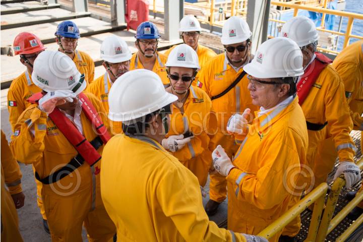 CIUDAD DEL CARMEN, CAMPECHE, 16JULIO2013.- Pedro Joaquín Coldwell, Secretario de Energía, realizó una gira de trabajo por la plataforma autoelevable de exploración Taxco, perteneciente a la Sonda de Campeche y operada por Petroleos Mexicanos (Pemex), plataforma de última generación la cual alberga a 106 trabajadores. FOTO: ESPECIAL / CUARTOSCURO.COM