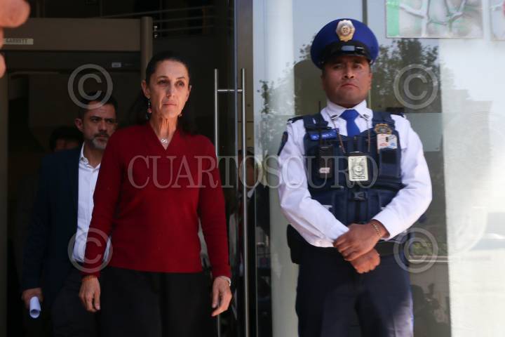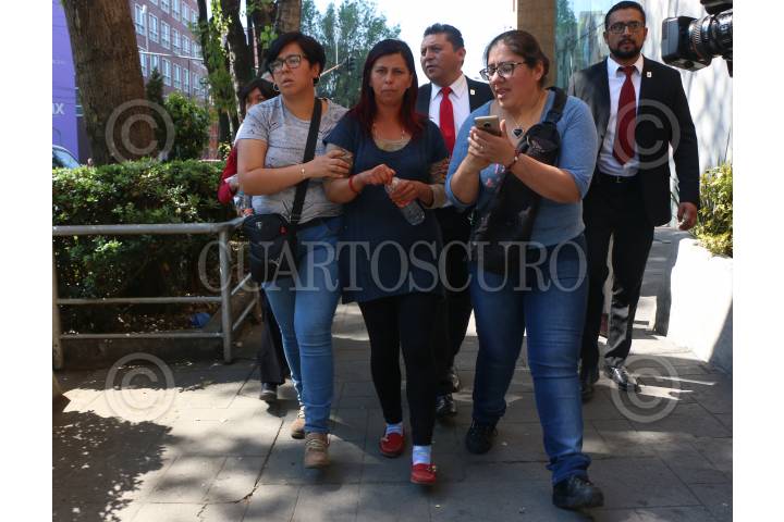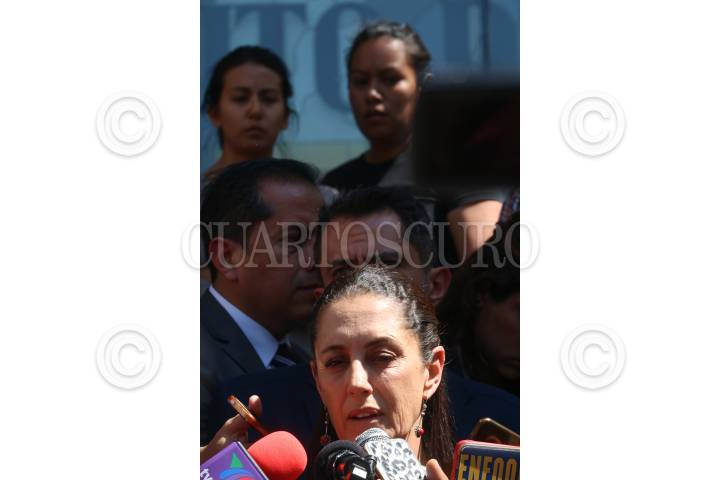 La jefa de gobierno y familiares de Fátima menor asesinada en la alcaldía Tláhuac a su salida del Instituto de Ciencias Forenses.