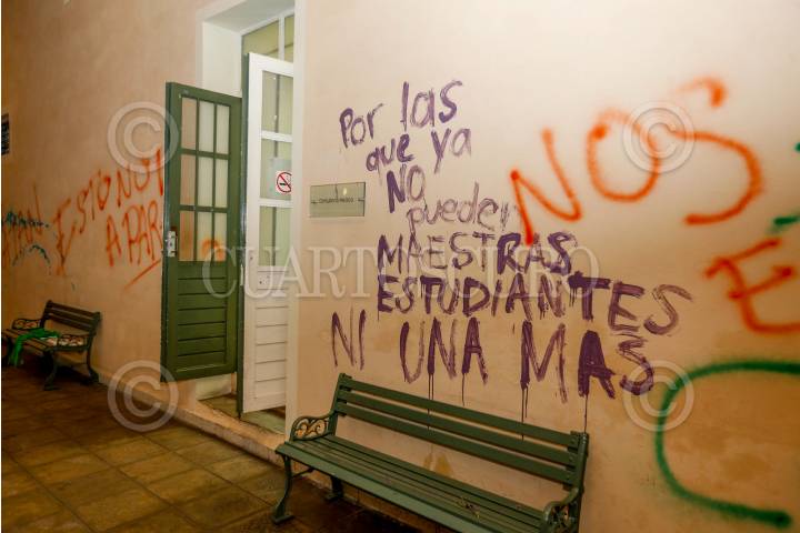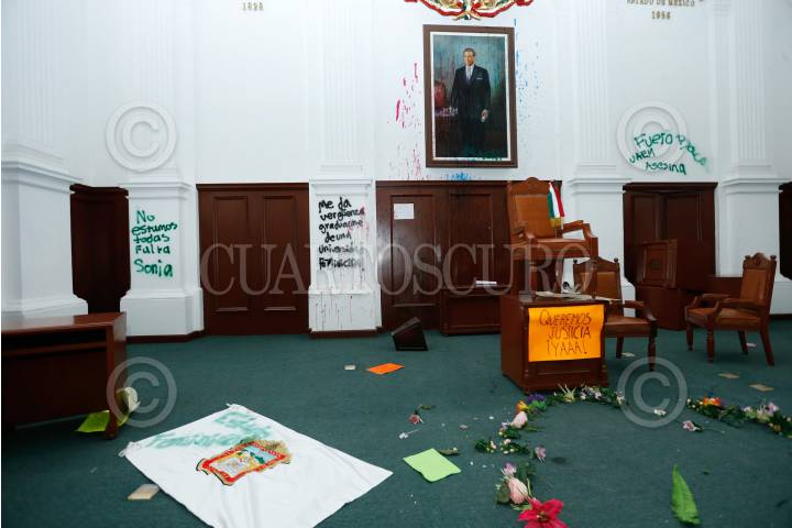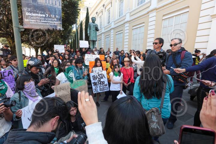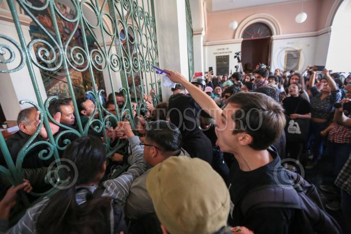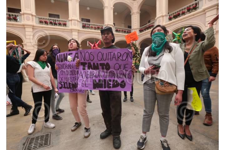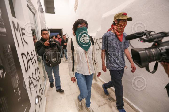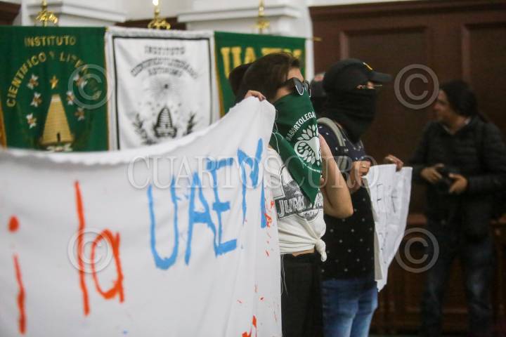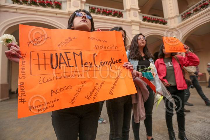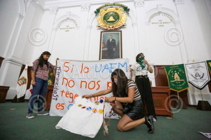 Al grito de justicia mujeres universitarias se manifestaron en el edifico de Rectoría de la UAEM exigiendo se esclarezca el asesinato de la maestra de danza Sonia Pérez