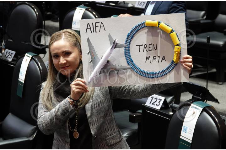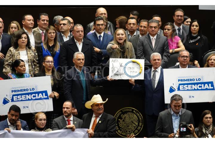 CIUDAD DE MÉXICO, 06NOVIEMBRE2023.- La diputada Sonia Rocha Acosta, acompañada de diputados del PAN, a tribuna para expresar sus motivos en contra del Presupuesto 2024, durante la Sesión Ordinaria en la Cámara de Diputados. FOTO: GRACIELA LÓPEZ /CUARTOSCURO.COM