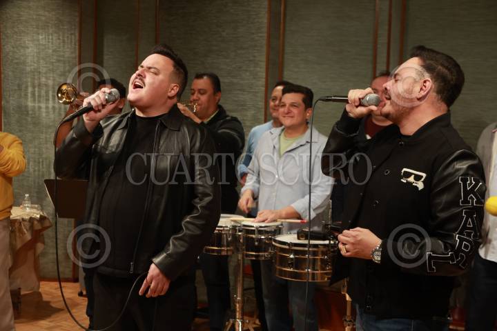CIUDAD DE MÉXICO, 22ENERO2025. El dueto de pop Río Roma acudió a un ensayo con la agrupación La Sonora Santanera. El tema “Amor de cabaret” que interpretan juntos recibió una nominación al Grammy Music Awards 2017 y por esto Río Roma será uno de los invitados en la próxima presentación de La Sonora Santanera en un centro de espectáculos. FOTO: EDGAR NEGRETE LIRA/CUARTOSCURO.COM