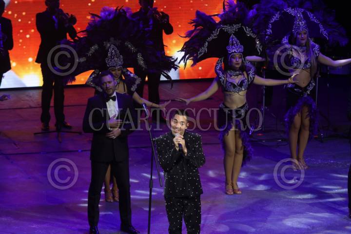 CIUDAD DE MÉXICO, 29ABRIL2025. Omar Chaparro canta con la Sonora Santanera durante la ceremonia número 50 de Las Diosas de Plata, por parte los Periodistas Cinematográficos de México (PECIME), premiación llevada a cabo en el CCT2. FOTO: EDGAR NEGRETE LIRA/CUARTOSCURO.COM