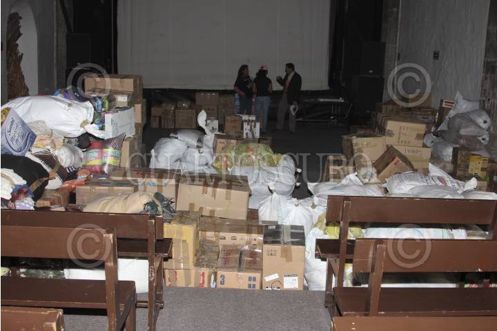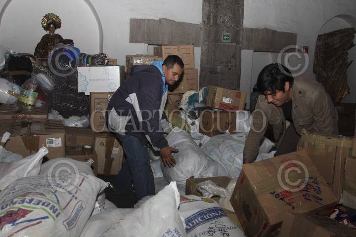 MÉXICO, D.F., 17ENERO2012.- Decenas de personas han apoyado con despensas que contienen frijol, arroz, agua, comida enlatada, ropa y cobijas para las comunidades tarahumaras que sufren de problemas de pobreza. El centro de acopio ubicado en la Universidad Claustro de Sor Juana es la matriz que recibe todos los apoyos para ser enviados. FOTO: ENRIQUE ORDÓÑEZ/CUARTOSCURO.COM
