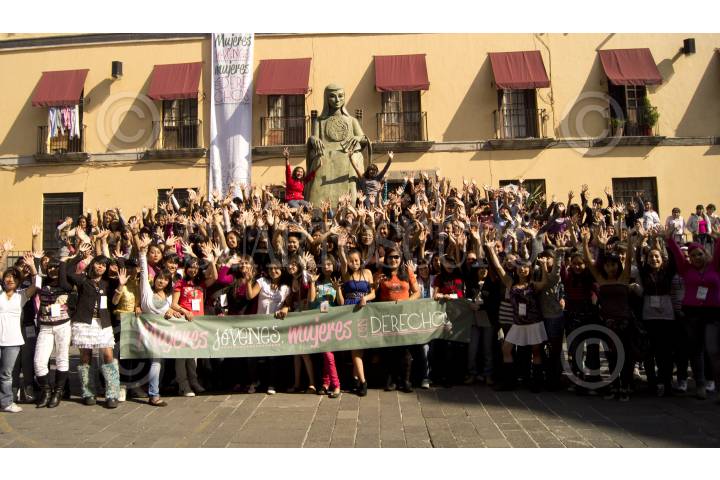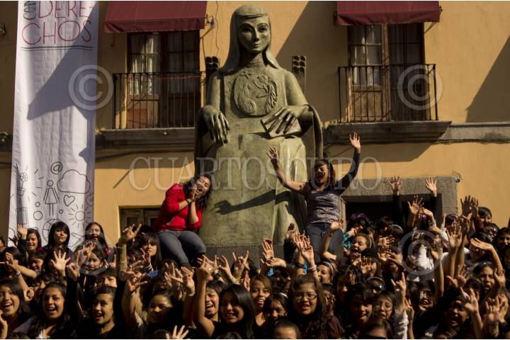 MÉXICO, D.F., 03MARZO2012.- Se realizó la presentación de las quinceañeras a las que se les entregará un vestido de XV años y se les organizará una fiesta por parte del gobierno del Distrito Federal, esto fue en el monumento a Sor Juana. FOTO: PEDRO ANZA /CUARTOSCURO.COM