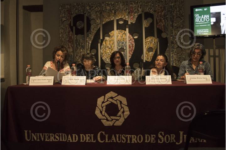 CIUDAD DE MÉXICO, 19MAYO2017.- Cármen López, Edith Negrín, Raquel Serur, Sara Poot y Cristina Rivera Garza, participaron en una mesa de homenaje de los Cien años de Juan Rulfo en el Claustro de Sor Juana. FOTO: TERCERO DÍAZ /CUARTOSCURO.COM