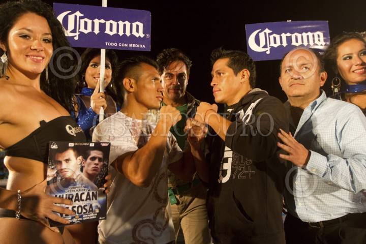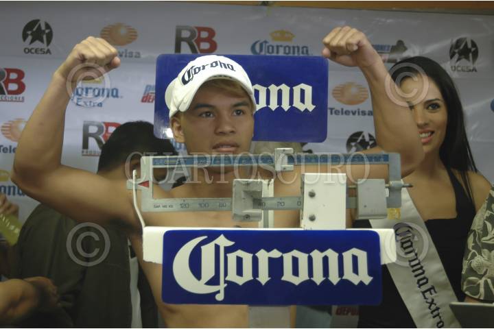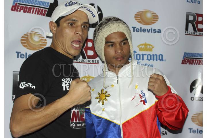 MÉXICO, D.F., 06ENERO2012.- El mexicano Edgar Sosa y el filipino Roilo Golez protagonizaron la ceremonia de pesaje nivel mosca del Consejo Mundial de Boxeo (CMB) previo a su pelea el día de mañana en donde el local expondrá su título. FOTO: DIEGO SIMÓN SÁNCHEZ/ CUARTOSCURO.COM
