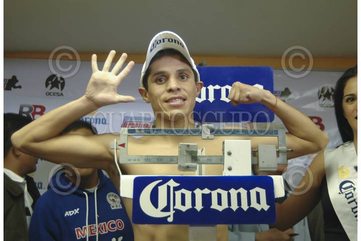 MÉXICO, D.F., 06ENERO2012.- El mexicano Edgar Sosa, durante la ceremonia de pesaje nivel mosca del Consejo Mundial de Boxeo (CMB) previo a su pelea el día de mañana en donde expondrá su título. FOTO: DIEGO SIMÓN SÁNCHEZ/ CUARTOSCURO.COM