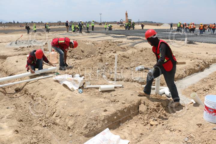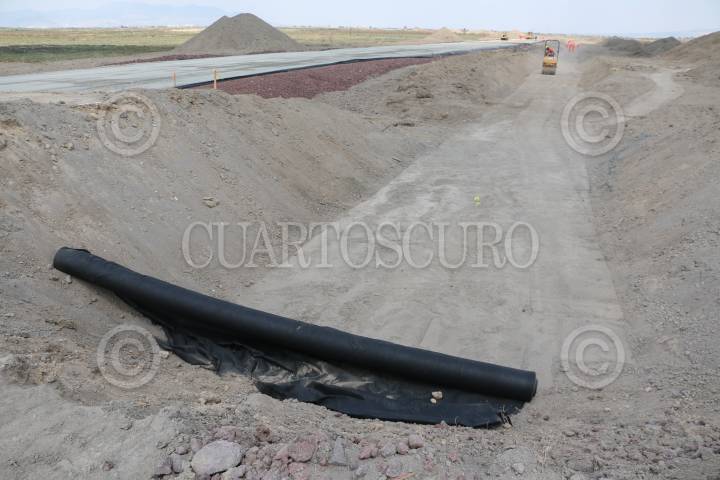 CIUDAD DE MÉXICO, 23MARZO2016.- Autoridades del Corporativo de Infraestructura del Grupo Aeroportuario de la Ciudad de México presentaron a los medios de comunicación el avance del 3.0 por ciento la edificación del nuevo aeropuerto que pretenden entre en operaciones el 2020. Trabajadores continúan con la nivelación del terreno, cimentación, edificación del campamento. FOTO: SAÚL LÓPEZ /CUARTOSCURO.COM
