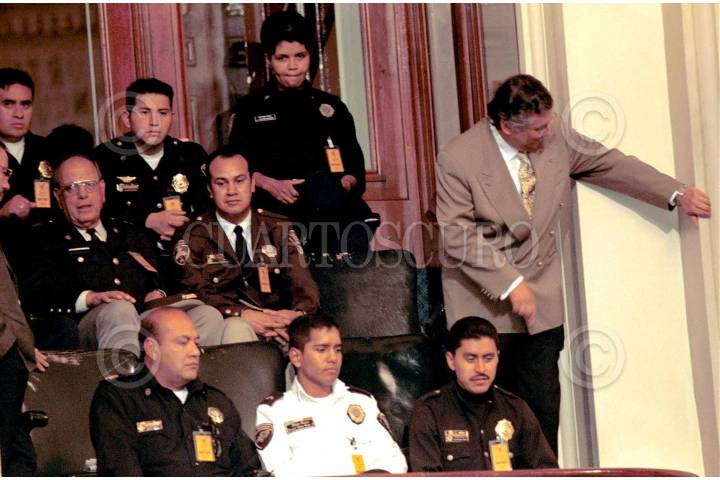 El director de la policia auxiliar Ramon Sosamontes acompañado de algunos de sus colaboradores asistieron como invitados al informe de labores de Rosario Robles. FOTO: Victoria Valtierra/CUARTOSCURO.COM