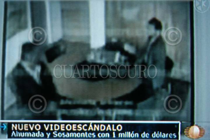 Mèxico D.F., a 11 de Noviembre de 2005.- Fueron difundidos por la television, donde se aprecia a Ramon Sosamontes entregandole una maleta con 1 millon de dolares al empresario Argentino, Carlos Ahumada, quien se encuentra preso en el reclusorio norte. FOTO: Tomada de la Television/CUARTOSCURO.COM