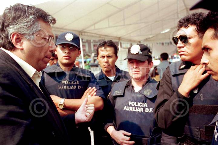 Ramón Sosamontes director de la policia auxiliar acudio a la casilla que se encuentra en el Zócalo para conversar con algunos integrantes de la corporación. FOTO: Victoria Valtierra/CUARTOSCURO.COM
