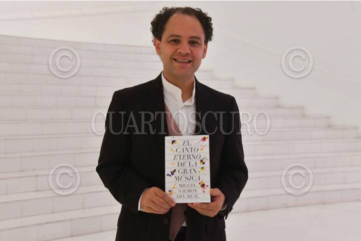 CIUDAD DE MÉXICO, 03FEBRERO2024.- Miguel Salmon del Real, director de la Orquesta Sinfónica Sinaloa de las Artes y escritor, durante la presentación de su libro "El canto eterno de la gran música" realizada en el lobby del Museo Soumaya. FOTO: MARIO JASSO/CUARTOSCURO.COM