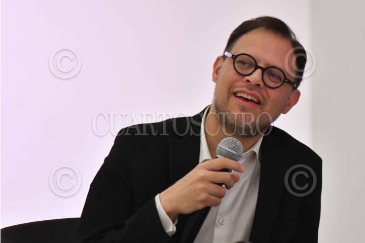 CIUDAD DE MÉXICO, 03FEBRERO2024.- José Manuel Recillas, poeta y ensayista, durante la presentación del libro "El canto eterno de la gran música" de Miguel Salmon del Real, director de la Orquesta Sinfónica Sinaloa de las Artes y escritor, realizada en el lobby del Museo Soumaya. FOTO: MARIO JASSO/CUARTOSCURO.COM