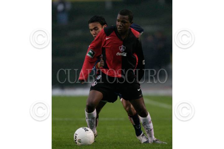 MONTERREY,N.L. 05FEBRERO2005.- Monterrey vs Atlas en juego de la jornada 4 del torneo Clausura, partido realizado en el estadio Tecnológico de esta ciudad, donde Monterrey consiguio la victoria por 1-0. En la imágen Robson Souza de Atlas se quita la marca del jugador de Monterrey. FOTO:Jorge López/CUARTOSCURO.COM