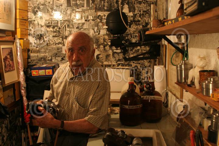 MEXICO D.F., 26DEABRIL2007.-Premio Nacional de Periodismo por Trayectoria 2006, el fotógrafo Julio Souza Fernández, mejor conocido como Julio Mayo, coordinador de al agencia Hermanos Mayo desde 1949 hasta 1992, fecha en que se disolvio el equipo de trabajo, recibirá junto con Pablo del Castillo Cubillo el otro sobreviviente y que se integró a la organización 1952, el Premio Naciona del Consejo Ciudadano del Premio Nacional de Periodismo A.C., el próximo día 3 de mayo en esta ciudad. Julio Mayo posa en su laboratorio fotográfico ubicado al sur del D.F., y que usa periodicamente a sus 91 años. FOTO: PEDRO VALTIERRA/CUARTOSCURO.COM