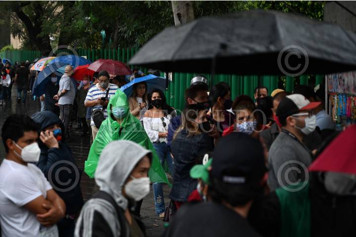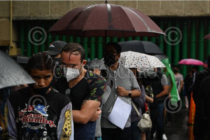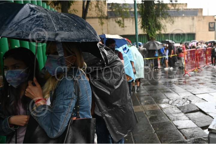 Durante la tarde comenzó a llover y afectó a los jóvenes mientras esperaban su vacuna.