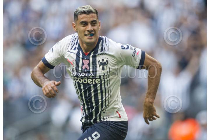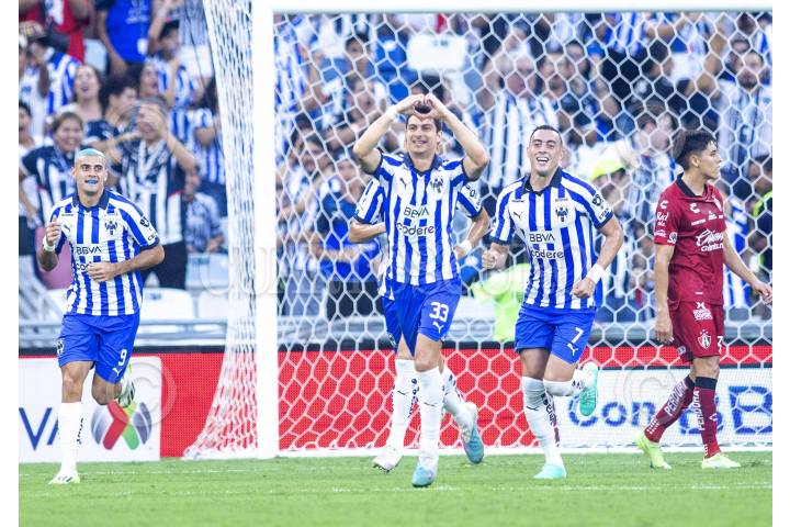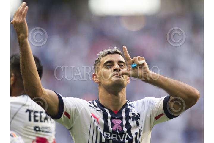 Germán Berterame de los Rayados del Monterrey festeja el gol ante el Cruz Azul, en el estadio BBVA, partido correspondiente a la vuelta en cuartos de final de la apertura 2022.