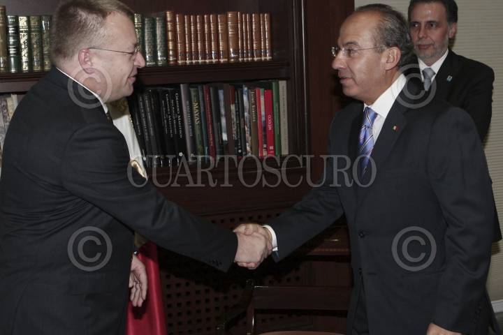 MÉXICO, D.F., 28NOVIEMBRE2011.- Felipe Calderón Hinojosa Presidente de México, se reunió con Stephen Elop, director ejecutivo de Nokia, en la Residencia oficial de los Pinos. FOTO: CUARTOSCURO.COM