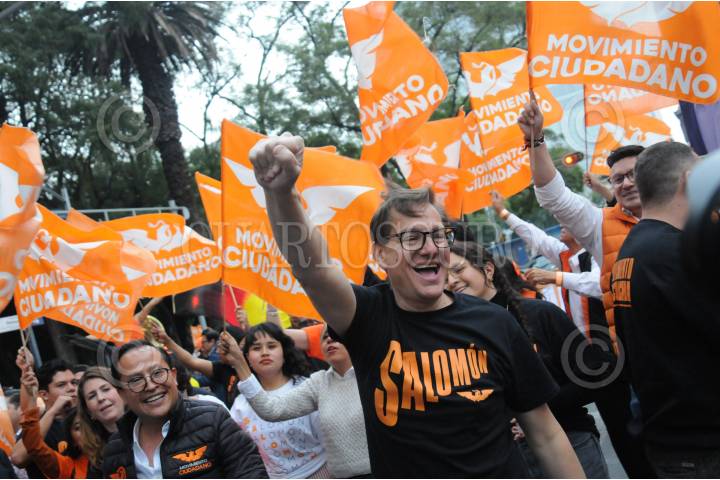 CIUDAD DE MÉXICO, 04DICIEMBRE2023. - Salomón Chertorivski, candidato de MC para la jefatura de gobierno, saluda a los conductores que transitan por Paseo de la Reforma. FOTO: DANIEL AUGUSTO /CUARTOSCURO.COM