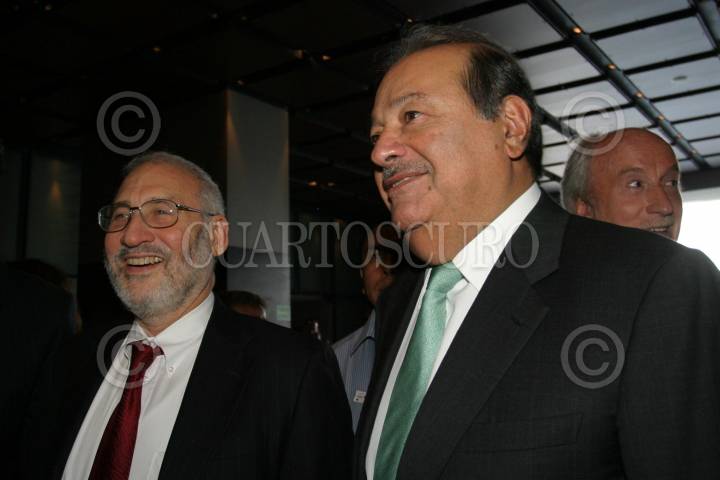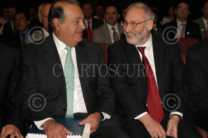 MEXICO, D.F. 09MARZO2006.- Carlos Slim, presidente honorario vitalicio del Grupo Carso y Joseph Stiglitz, Premio Nobel de Economía durante el Foro para la "Competitividad del país" en el Hotel Sheraton Centro Històrico. FOTO: Rocío Ortiz/CUARTOSCURO.COM