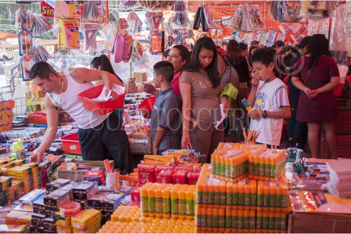 MÉXICO, D.F., 17AGOSTO2014.- Miles de familias acudieron al centro histórico a realizar compras de útiles escolares de último momento. Con la lista básica de útiles escolares, los padres de familia están gastando en promedio entre 500 y mil pesos, por niño. Este lunes iniciarán clases 25 millones 969 mil 583 alumnos de educación básica, en niveles preescolar primaria y secundaria; con apoyo de un millón 209 mil 426 docentes, en 229 mil 018 planteles escolares. Aquí, los capitalinos comprando en la Plaza Pino Suárez. FOTO: IVÁN STEPHENS /CUARTOSCURO.COM
