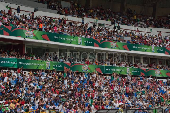 ZAPOPAN, JALISCO 07JULIO2011.- Inchas charruas festejan el triunfo de su selección. Brasil sucumbió ante su similar de Uruguay, por 3-0 en el estadio Omnilife. La sorpresa de Uruguay lo coloca en la final de la copa del mundo Sub 17 en su 14va edición. FOTO: DEMIAN CHÁVEZ/CUARTOSCURO.COM