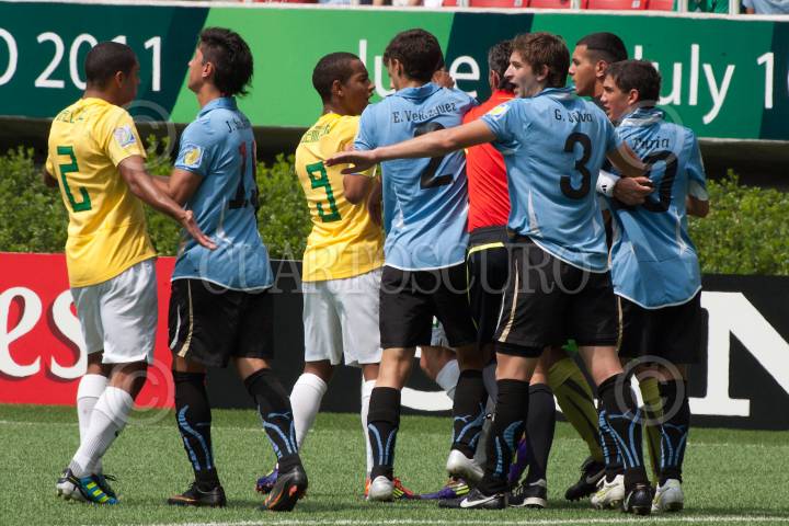 ZAPOPAN, JALISCO 07JULIO2011.- El equipo de Brasil sucumbió ante su similar de Uruguay, por 3-0 en el estadio Omnilife. La sorpresa de Uruguay lo coloca en la final de la copa del mundo Sub 17 en su 14va edición. FOTO: DEMIAN CHÁVEZ/CUARTOSCURO.COM