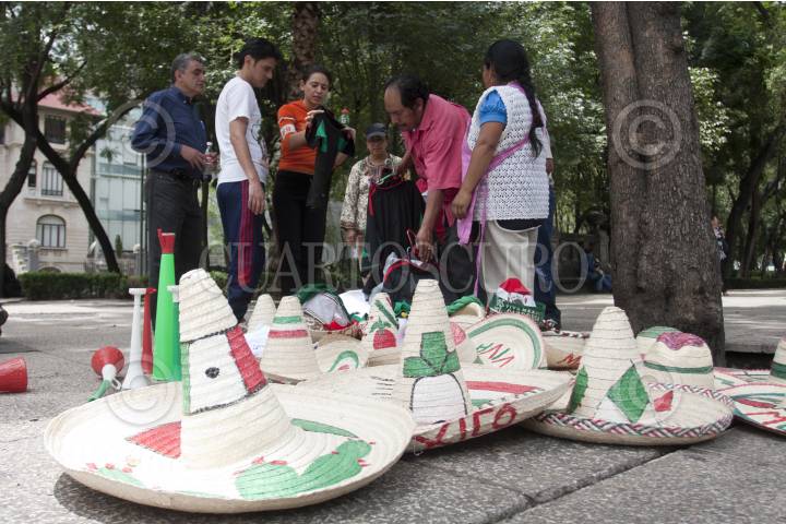 MÉXICO, D.F., 10JULIO2011.- Un par de vendedores ofertan playeras de la selección nacional a un costado del Ángel de la Independencia, ya que esta tarde se disputa la final entre la selección nacional y la selección de Uruguay, del Mundial de Futbol de la Sub17. FOTO: GUILLERMO PEREA /CUARTOSCURO.COM