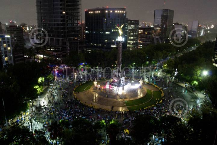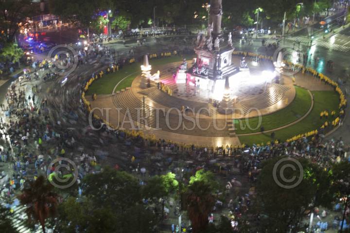 MÉXICO, D.F., 10JULIO2011.- Miles de aficionados se dieron cita en el Ángel de la Independencia, para celebrar el triunfo de la selección mexicana de futbol Sub17, quienes obtuvieron la Copa Mundial al vencer a su similar de Uruguay dos goles a cero en el Estadio Azteca. FOTO: GUILLERMO PEREA /CUARTOSCURO.COM