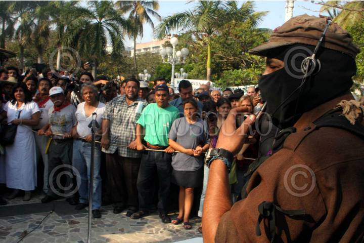 VERACRUZ, VERACRUZ 30ENERO2006.- El Subcomandante Insurgente Marcos, Delegado Zero para La Otra Campaña del EZLN a su llegada al parque Zamora del puerto veracruzano en su tercer dia de gira en la entidad. Foto: Moysés Zuñiga Santiago/CUARTOSCURO.COM