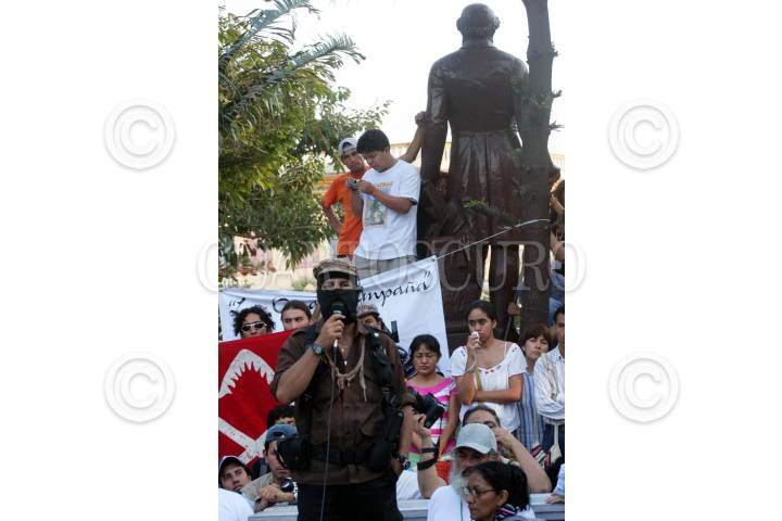 MEXICO, D.F. 02 DICIEMBRE 2006. Los Comandantes Miriam, Zebedeo, Gabriela y el Subcomandante Insurgente Marcos, Delegado Zero de La Otra Campaña del EZLN durante conferencia titulada ¨La Otra Campaña y el anticapitalismo¨. FOTO: MOYSÉS ZÚÑIGA/CUARTOSCURO.COM