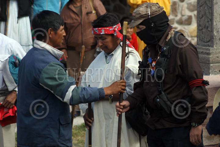 SISOGUICHI, CHIHUAHUA 31OCTUBRE2006.-El Subcomandate Marcos, Delegado Zero de La Otra Campaña del EZLN recibe el bastón de mando de los indígenas Raramuris en la sierra Tarahumara. FOTO: MOYSÉS ZÚÑIGA SANTIAGO/CUARTOSCURO