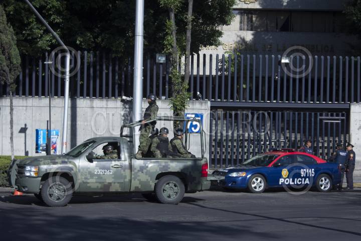 MÉXICO, D.F., 18AGOSTO2013.- Soldados del Ejercito Mexicano, realizaron patrullajes en los alrededores de La Subprocuraduría Especializada en Investigación de Delincuencia Organizada (SEIDO) donde se encuentra rindiendo su declaración Mario Armando Ramírez Treviño, líder del Cartel del Golfo. FOTO: ENRIQUE ORDÓÑEZ /CUARTOSCURO.COM