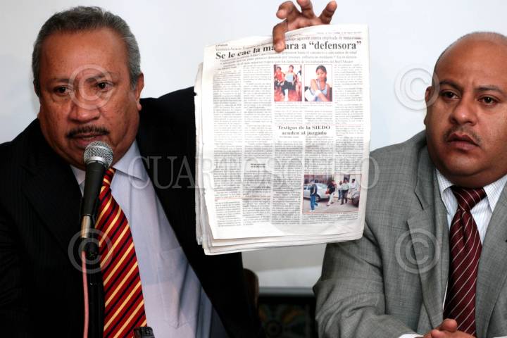 MÉXICO D.F. 22MARZO2007.- Los abogados de Jean Succar Kuri, (de izquierda a derecha), Hernán Cisneros, Wenceslao Cisneros y Sócrates Cisneros; en conferencia de prensa para presentar pruebas de un presunto complot en contra de su defendido, acusado de contar con una red de pederastía. FOTO: JEFTÉ ARGUELLO/CUARTOSCURO.COM