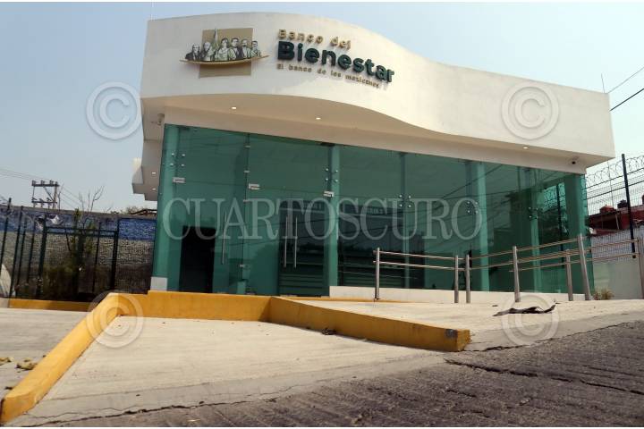 Una sucursal del Banco del Bienestar que aún no esta en servicio ubicada en la colonia Ruben Jaramillo en Temixco, Morelos.