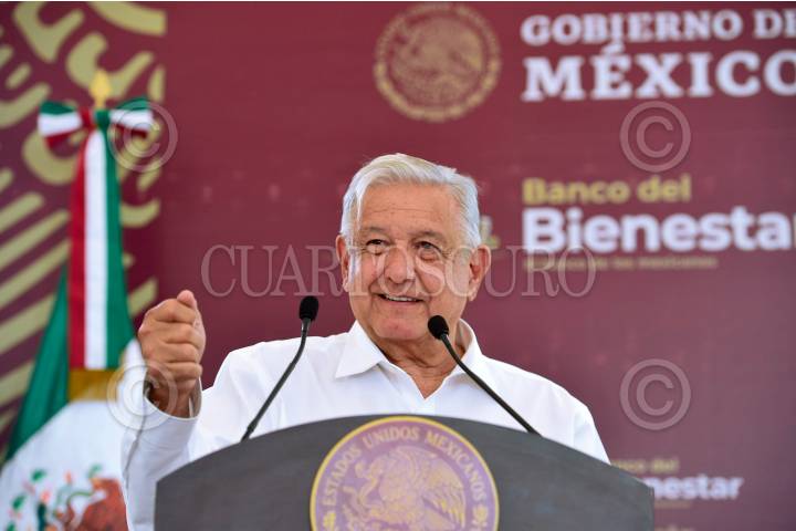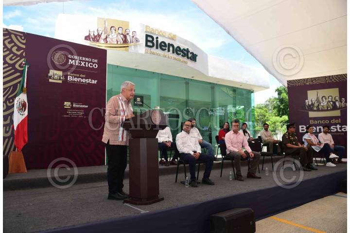 Andrés Manuel López Obrador, Presidente de México, durante la inauguración del Banco del Bienestar en Villa Corzo.
